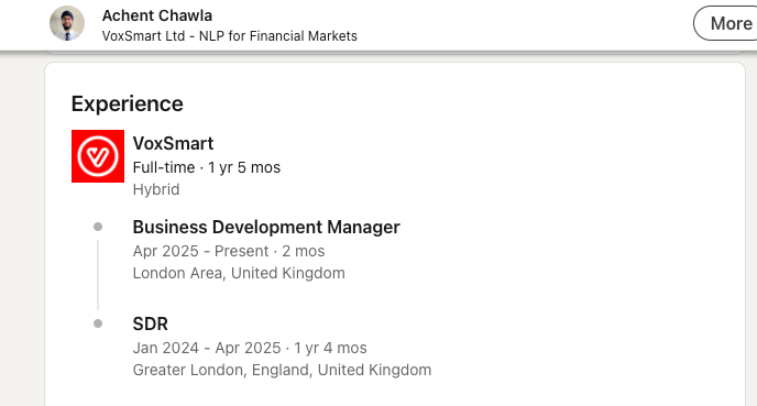 The benefit of exceptional talent is that they’ll grow with your startup. Take Achent Chawla as an example. Achent joined VoxSmart via Jumpstart as an SDR. “He quickly became the most successful SDR” VoxSmart have ever hired (Sebastian Wren, Snr Sales Manager @ VoxSmart) and just over a year later, got promoted to BD Manager where he’s now hiring SDRs (via Jumpstart, of course).